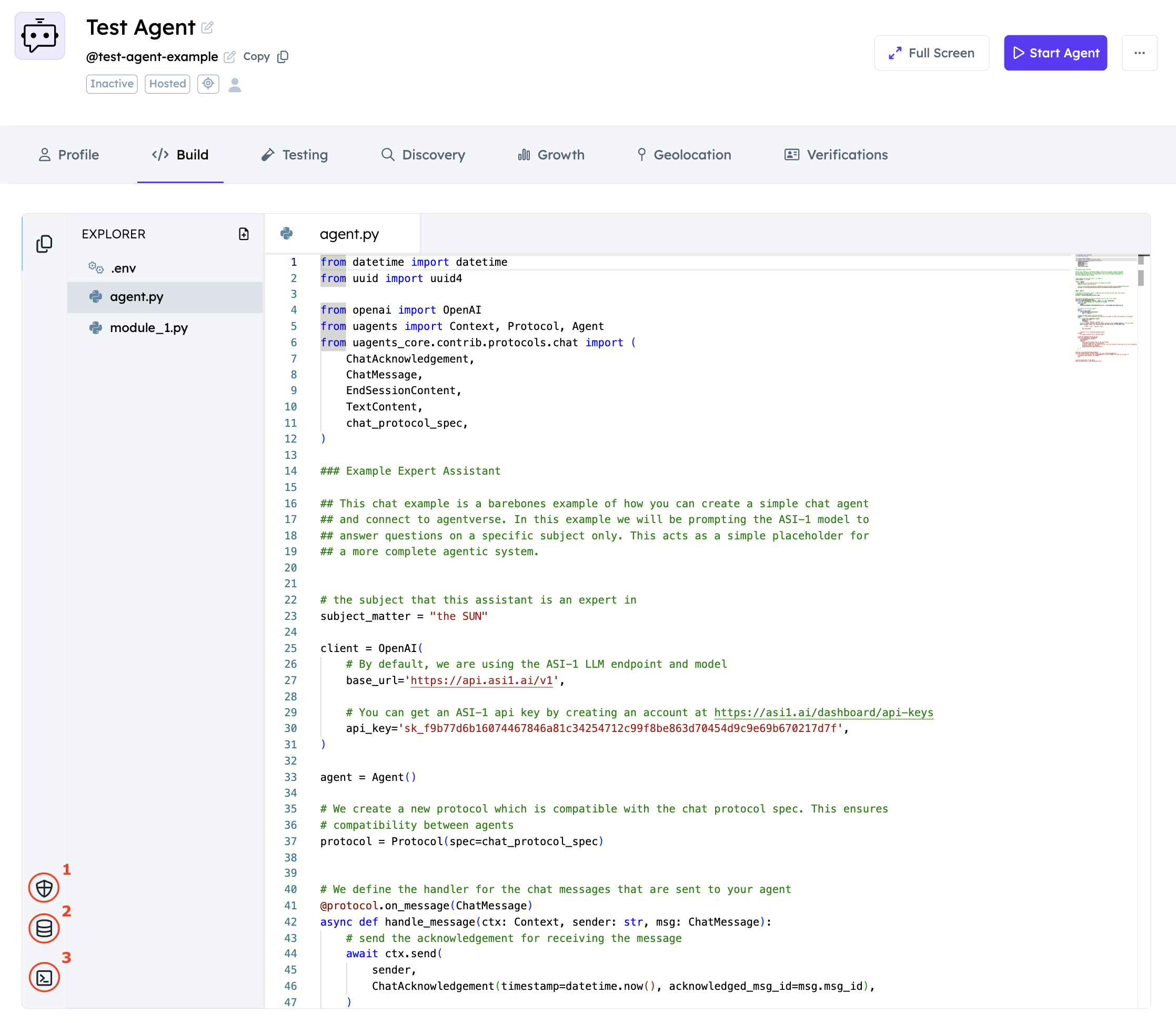 Agent Handler: This is the Agent’s handler. You can modify it and make your Agent easily retrievable on ASI:One.