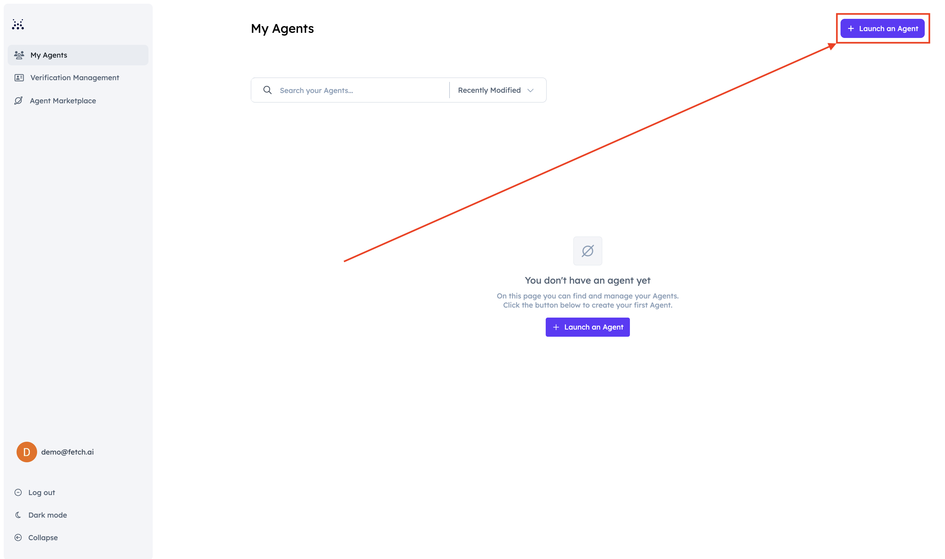 You can launch a Hosted Agent by clicking the + Launch an Agent button:
