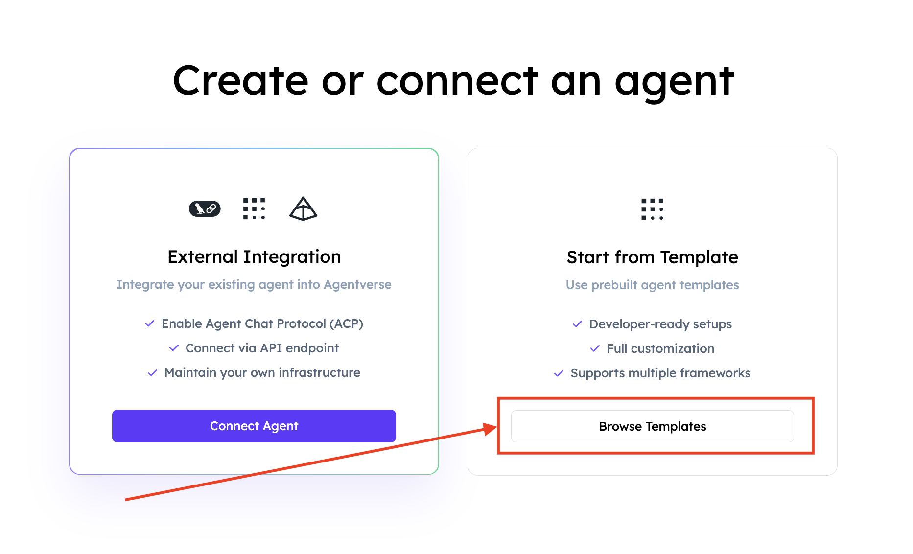 Here, you have multiple templates you can use as a starting point for your Agent application: