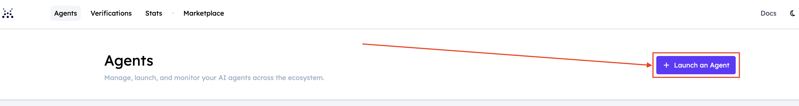 Click on Agents tab and click Launch an Agent.