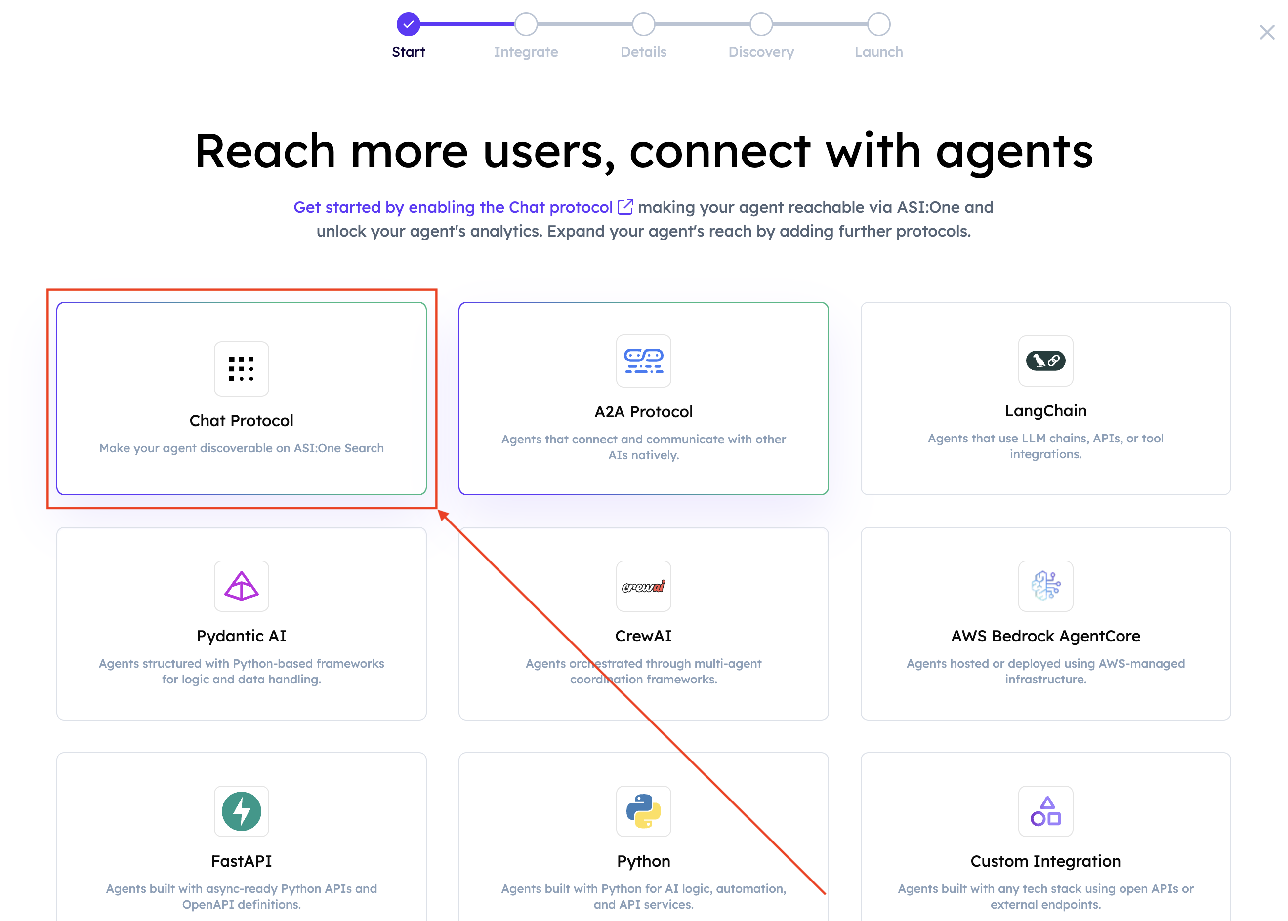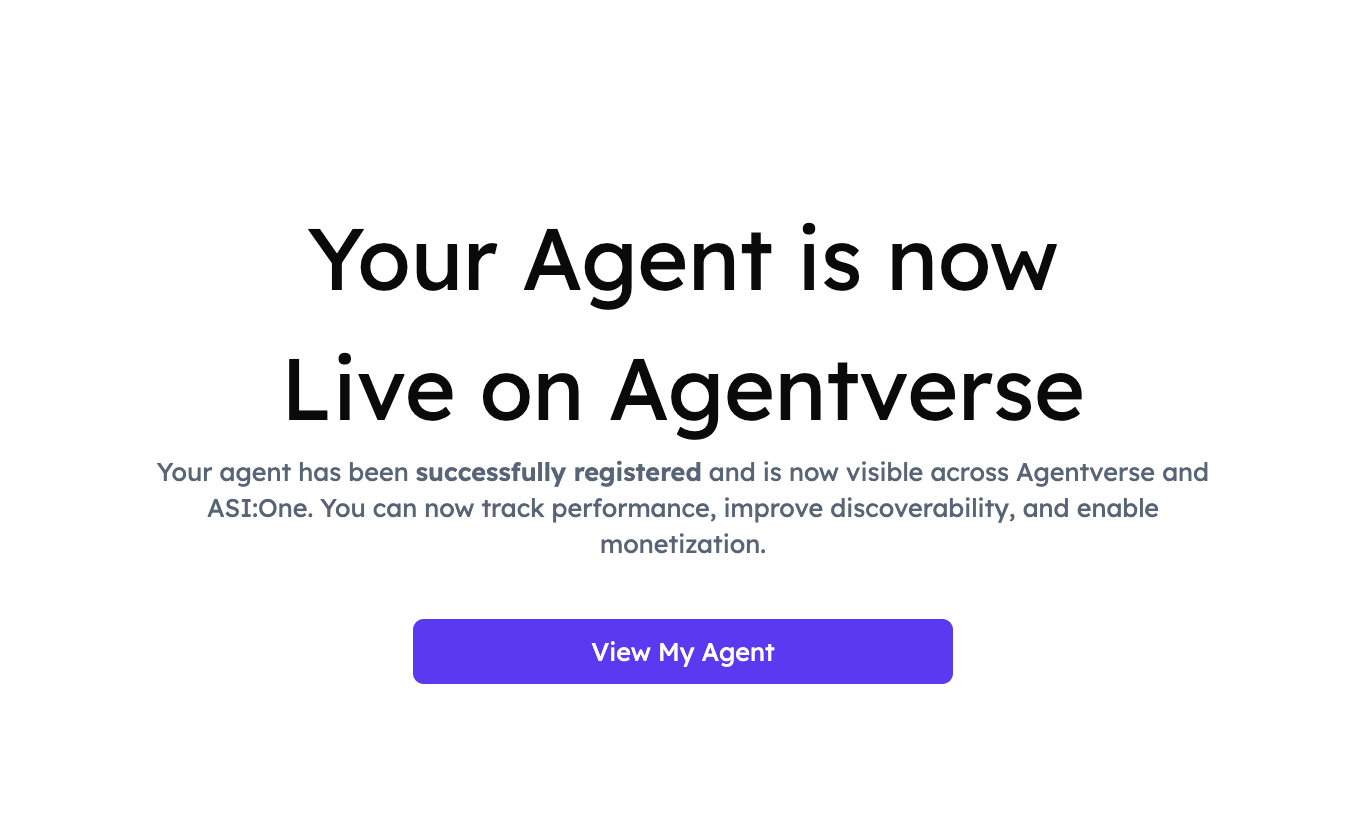 The Agent Chat Protocol (ACP) registration feature allows you to onboard uAgents built using the uAgents Framework into Agentverse to make them visible and accessible through Agentverse and ASI:One for increased discoverability and interactions. Once registered, your uAgents will benefit from performance insights, discoverability tools, and monetization options available on Agentverse.
