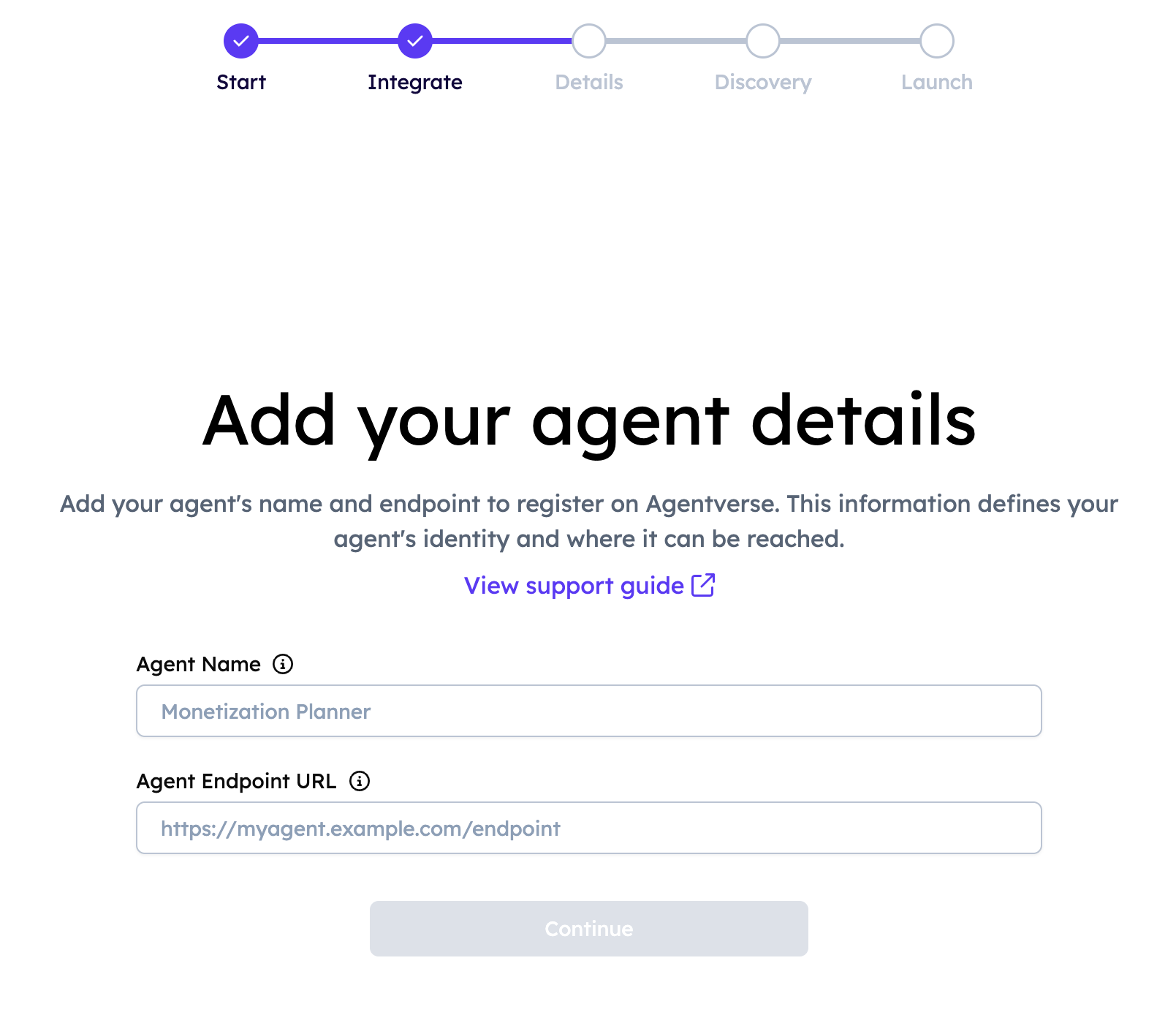 Enter the Agent’s details: the Agent name and Agent endpoint.