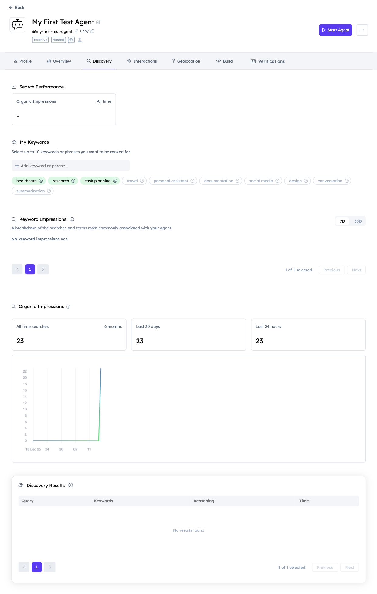 Within each Agent’s Dashboard Overview page, you are able to explore a list of steps to carry out in order to enhance discoverability of your agent and consequently interactions and monetization opportunities:
